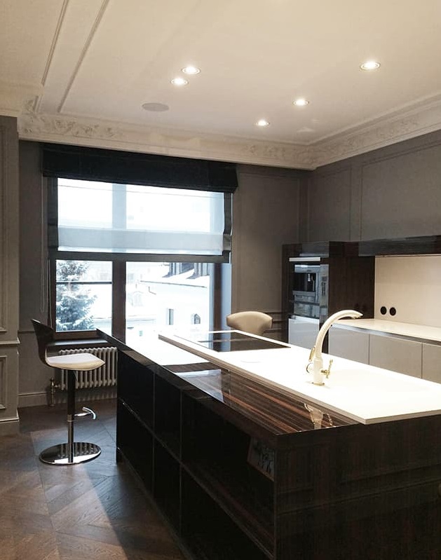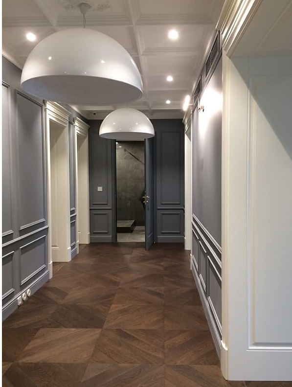 Минимализм и лаконичность в сочетании с монохромной гаммой придают пространству изысканность и аристократизм. Проект выполнен Архитектурным бюро MassGroup. Авторы - Александр Олимпиев, Анна Дрождина и Мария Пишкевич. В реализации проекта использован инженерный модульный паркет по индивидуальному заказу Lab Arte.