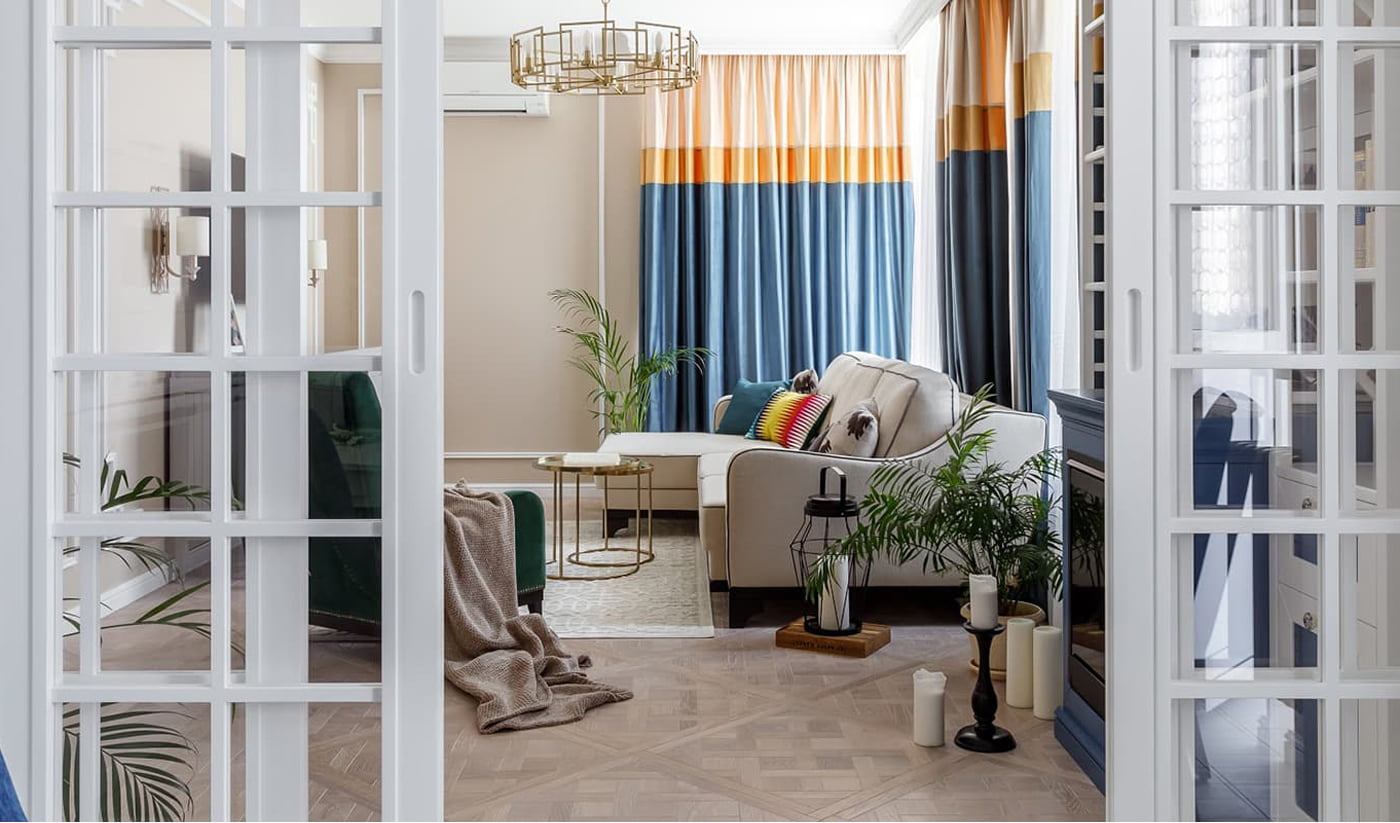 Это проект, выполненный для мамы заказчика, которая несколько лет жила в Японии, и очень любит гжель. Мы отталкивались от этих двух факторов плюс от желания создать яркий, теплый, радостный интерьер. Именно поэтому родилась такая идея: традиционная городская классика с элементами восточной стилистики. Проект полностью был реализован в условиях удаленной работы с заказчиками. Получилось идеально, поскольку было понимание и доверие.