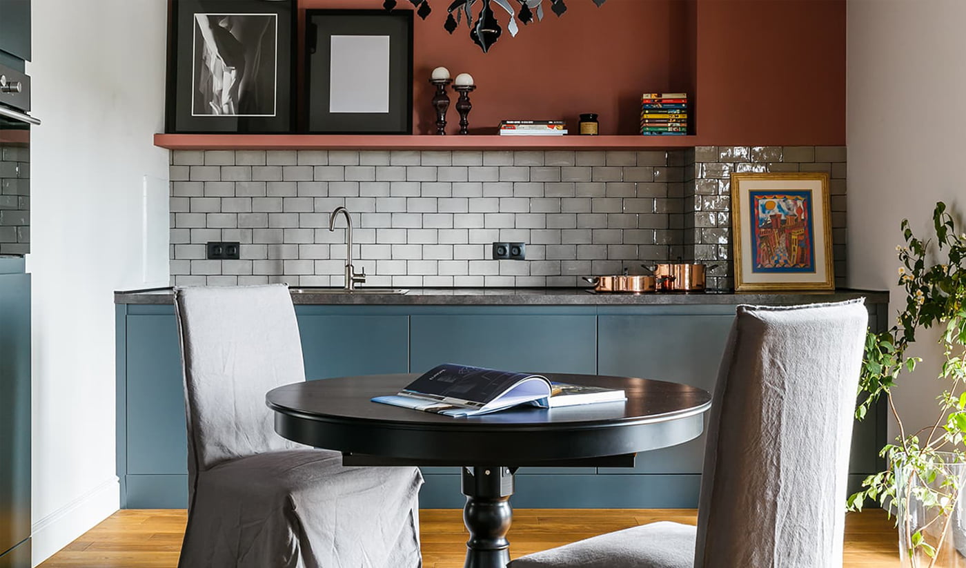 В однокомнатной квартире в центре Краснодара требовалось создать эргономичное, максимально открытое пространство с минимумом мебели и аксессуаров. Для поддержания нужного масштаба были увеличены дверные проемы, а для стен и потолка использован одинаковый светло-серый оттенок — так визуально смягчается переход из одной плоскости в другую, таким образом помещение становится более комфортным.