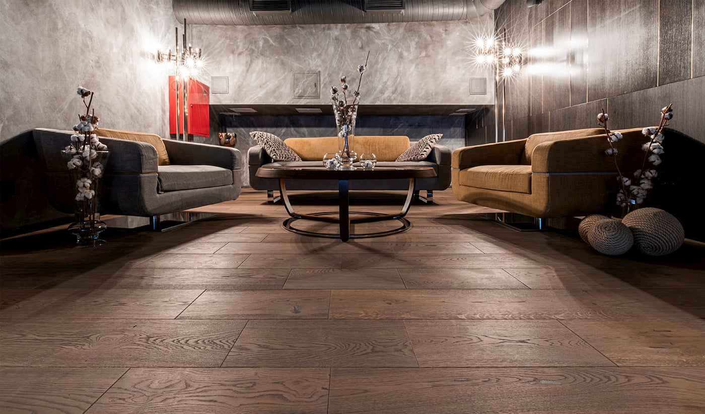 Кто сказал, что натуральные полы нельзя использовать в общественных помещениях? В новом пространстве кинотеатра-ресторана FOSTER CINEMA на втором этаже в лаунж-зоне и зоне прослушивания аудиосистем уложена натуральная доска под маслом. В состав масла входят натуральные материалы и обладает бактерицидными свойствами, такие полы можно укладывать в помещениях, где живут люди, страдающие астмой.